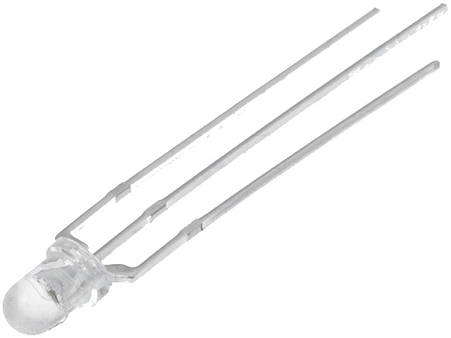 LED dioda 3mm rudá 619-629nm/teplá bílá 3000K úhel 30° 2180mcd/2180mcd společná anoda, (3 vývody).