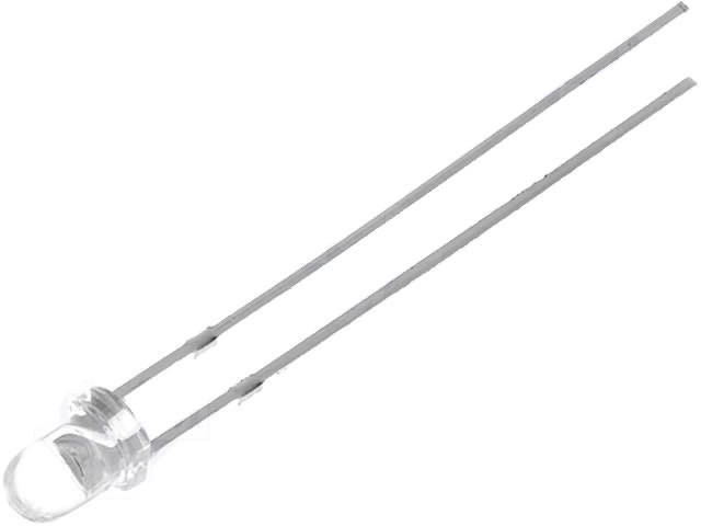 LED dioda 3mm žlutá 590nm bodová 30° 700mcd, If 20mA, čiré pouzdro