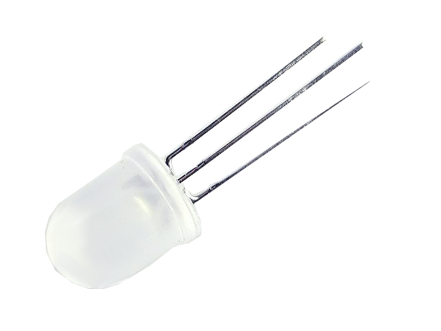 LED dioda 10mm rudá 625nm/zelená 565nm rozptylná 50° 80mcd/50mcd společná katoda (3 vývody)