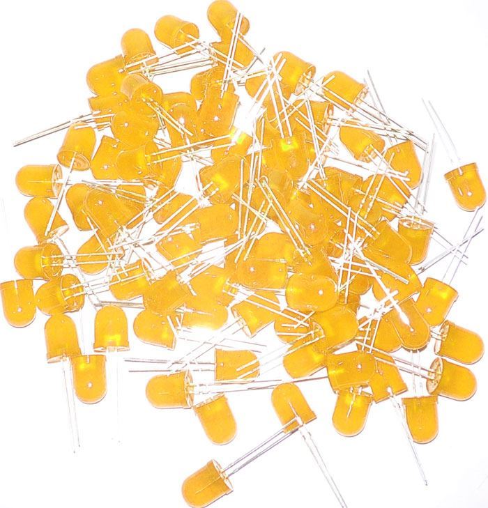 Sada 100ks LED diod 10mm žlutá rozptylná