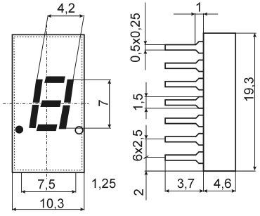 LED displej rudý 640nm, výška znaku 7mm, společná anoda, If: 10mA, Uf: 2-3V