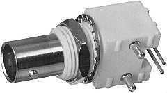 BNC 50 ohm zásuvka do plošného spoje úhlová, plastová s matkou