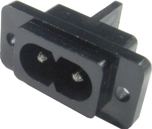 Dvoupólová napájecí vidlice, montáž do panelu.