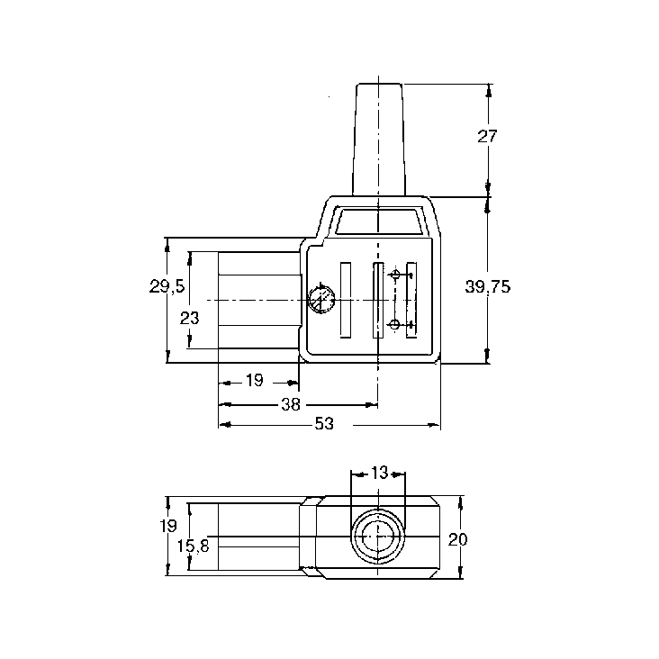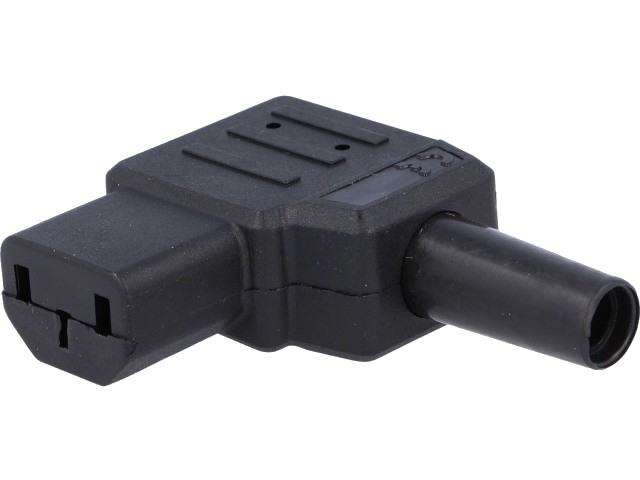 Napájecí zásuvka na kabel IEC60320 C13 10A, úhlová 90° pravá.