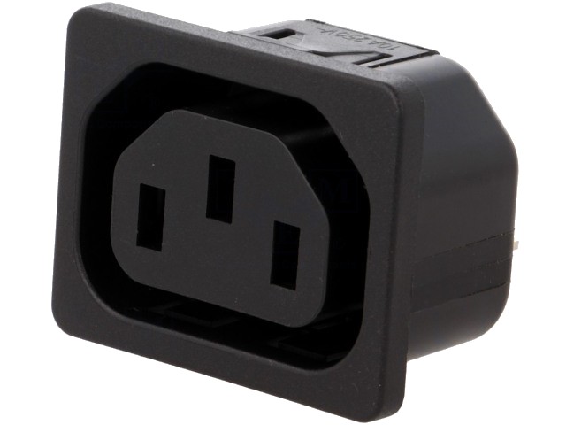 Napájecí zásuvka na panel IEC60320 C13 10A, na zacvaknutí.