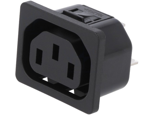 Napájecí zásuvka na panel IEC60320 C13 10A, na zacvaknutí.
