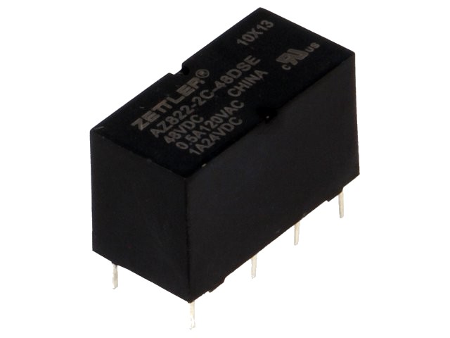 Relé 48VDC, 1A, 2x přepínací kontakt