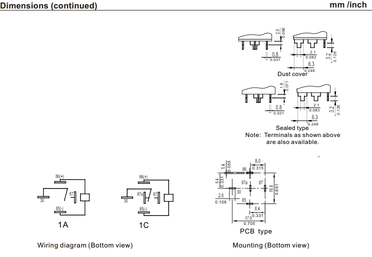 Vývody: ploché vývody do plošného spoje 2.1 x 0.8mm