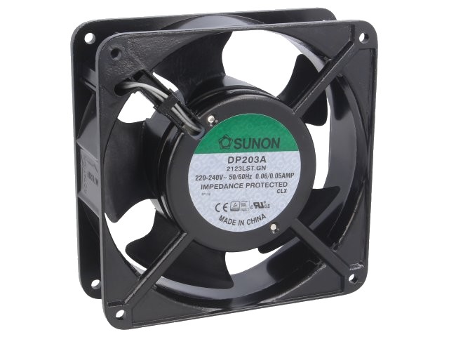Ventilátor 230VAC, 120x120x38mm, 11W, kluzné ložisko.