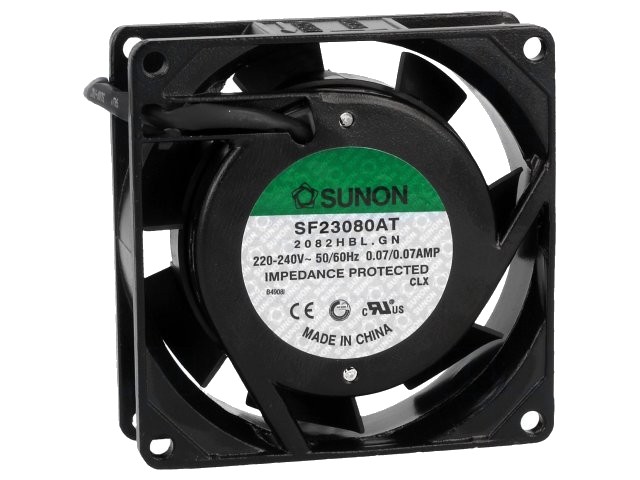 Ventilátor 230VAC, 80x80x25mm, 14W, kuličkové ložisko.