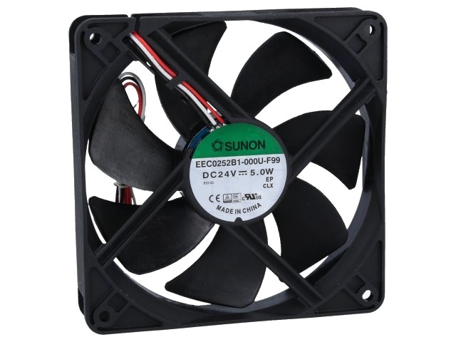 Ventilátor 24VDC, 120x120x25mm, 5W, kuličkové ložisko, měření otáček.