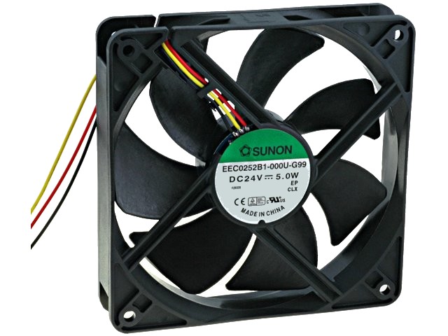 Ventilátor 24VDC, 120x120x25mm, 5W, kuličkové ložisko, měření otáček.