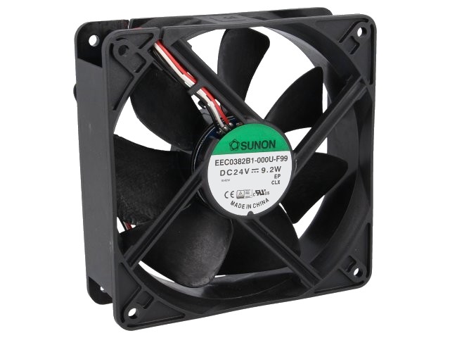 Ventilátor 24VDC, 120x120x38mm, 9.2W, kuličkové ložisko, měření otáček.