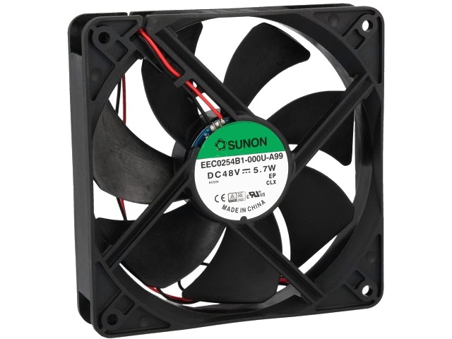 Ventilátor 48VDC, 120x120x25mm, 5.7W, kuličkové ložisko.