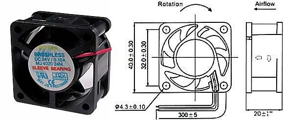 Ventilátor 24VDC, 40x40x20mm, 100mA