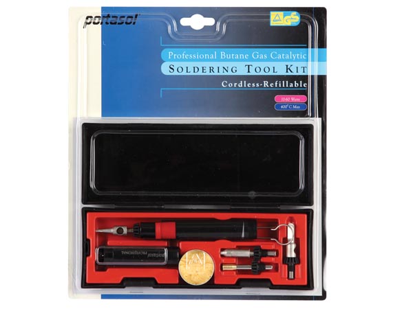 Sada plynové páječky 60W Portasol Professional a různých hrotů a nástavců v plastovém boxu