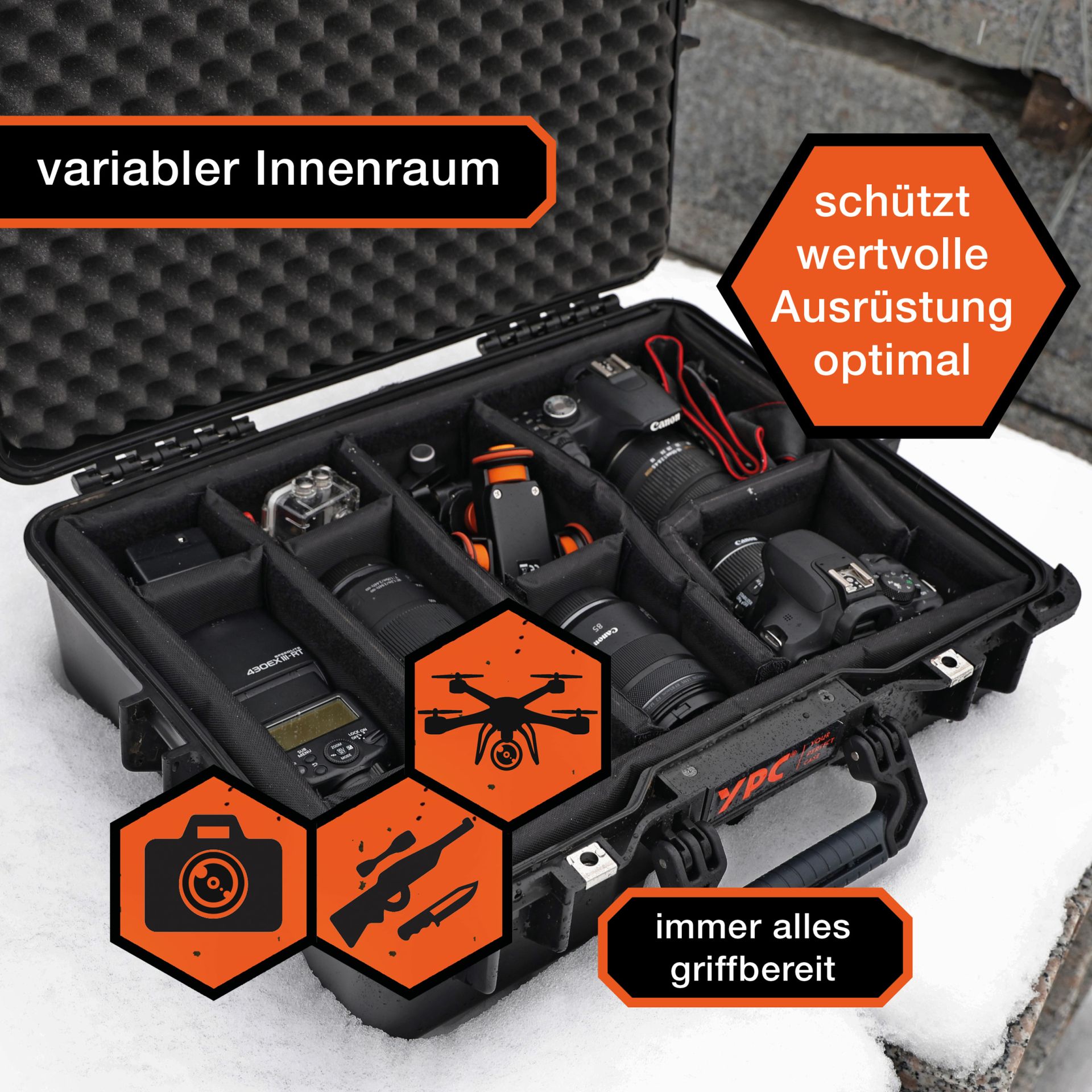 VŠESTRANNÉ POUŽITÍ: Toto pouzdro je ideální nejen pro kamery, drony a různé přístroje – je také ideální pro další citlivé vybavení nebo cenné zbraně a předměty, které potřebují ochranu.