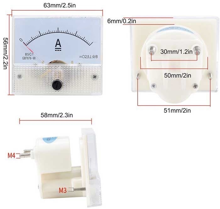 ANALOGOVÝ PANELOVÝ AMPÉRMETR 30A DC / 64 x 56mm včetně bočníku