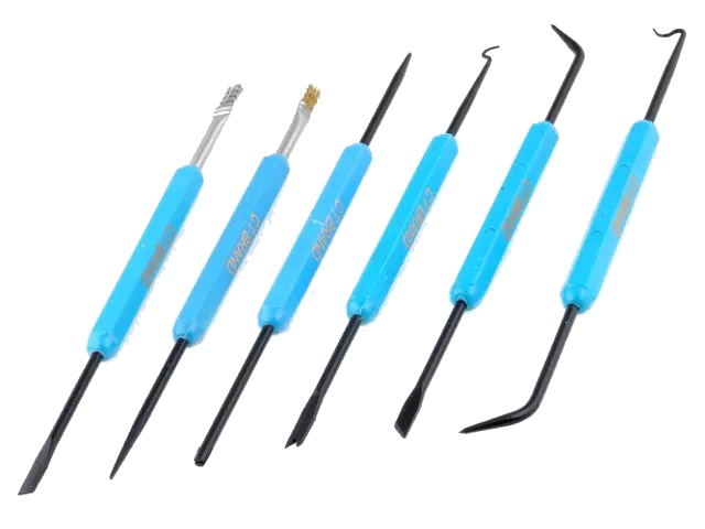 Sada 6 ks oboustranných nástrojů pro čištění součástek, desek plošných spojů, pro úpravu plošných spojů apod.
