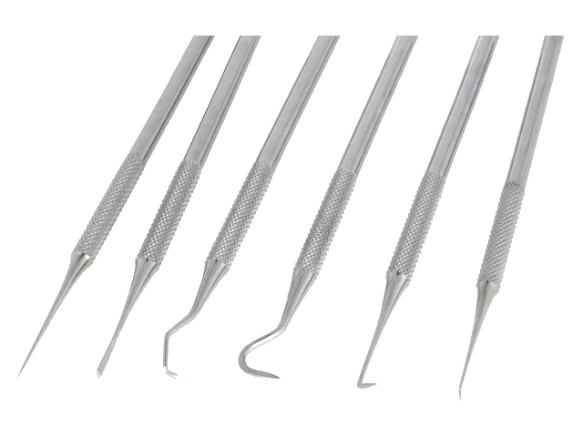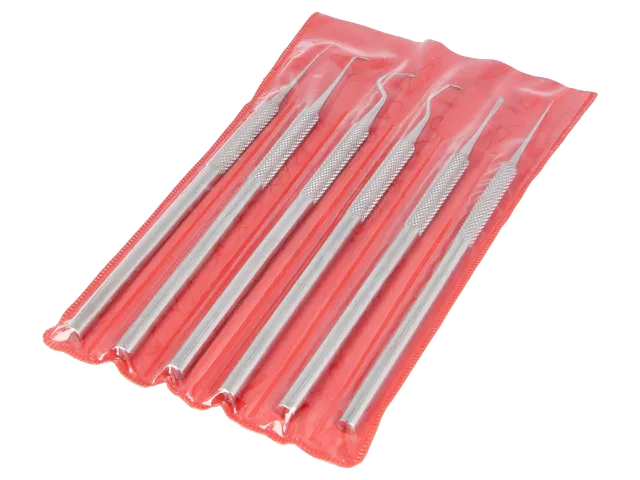 Sada 6 ks nástrojů pro čištění součástek, desek plošných spojů, pro úpravu plošných spojů, škrábání, odstraňování přebytku cínu, oddělování slitých pájených spojů apod.