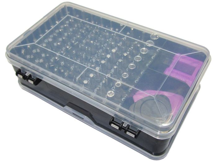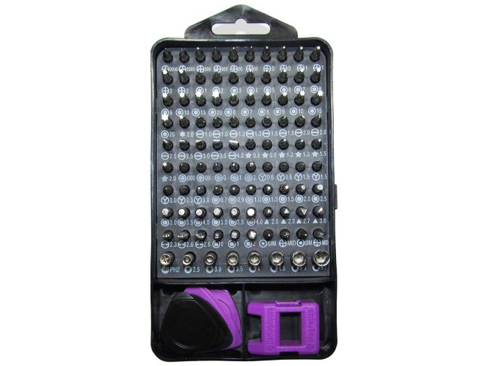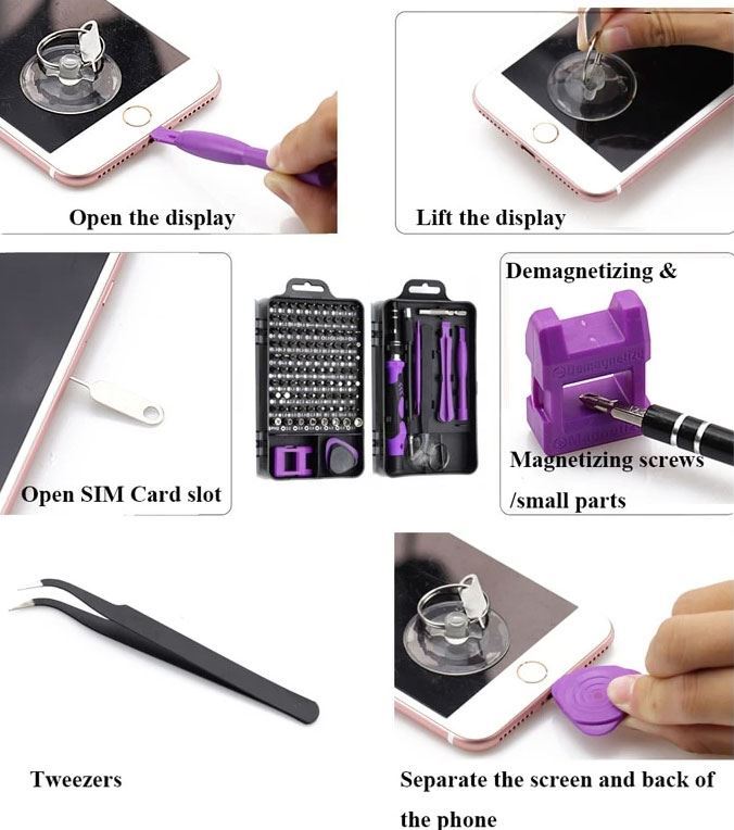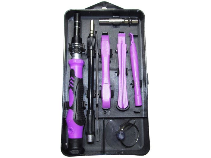 Sada šroubováků a nástrojů pro opravu mobilních telefonů.