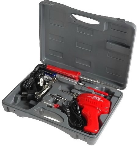 Sada přípravků pro pájení v plastovém kufříku.