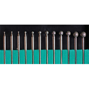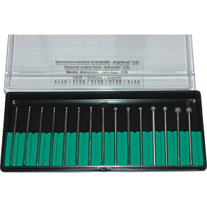15-ti dílná sada diamantových kulových frézek různých průměrů.