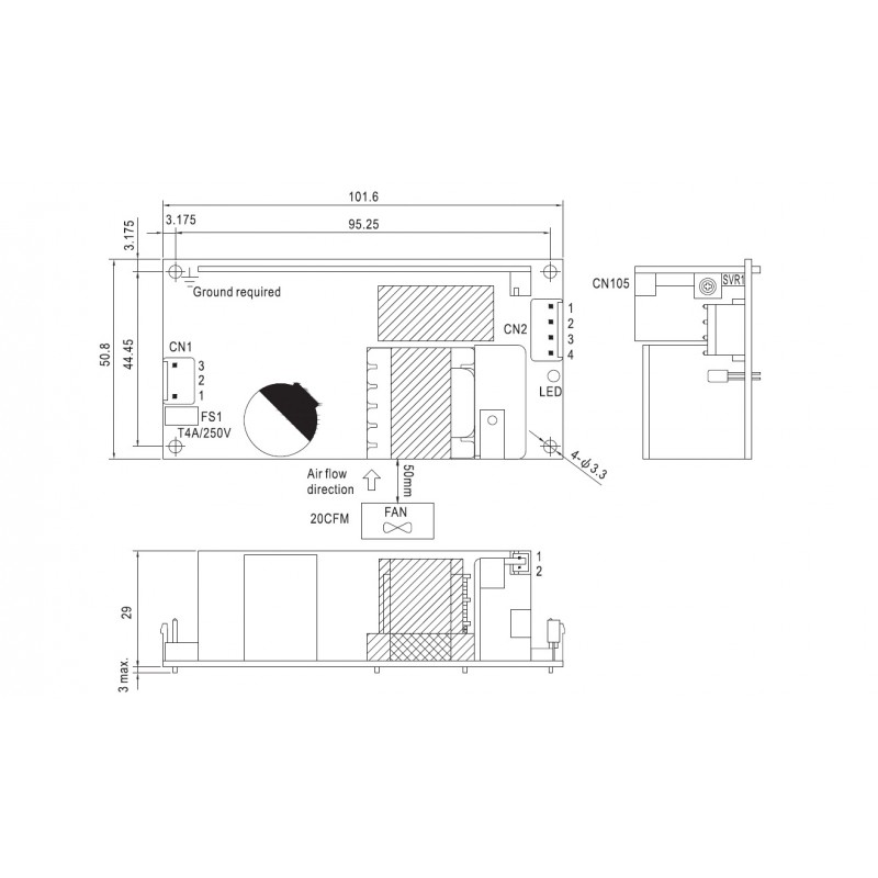 Stabilizovaný spínaný zdroj MEANWELL bez krytu (open-frame).