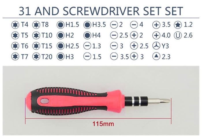 TORX: T20, T15, T10, T8, T7, T6, T5, T4