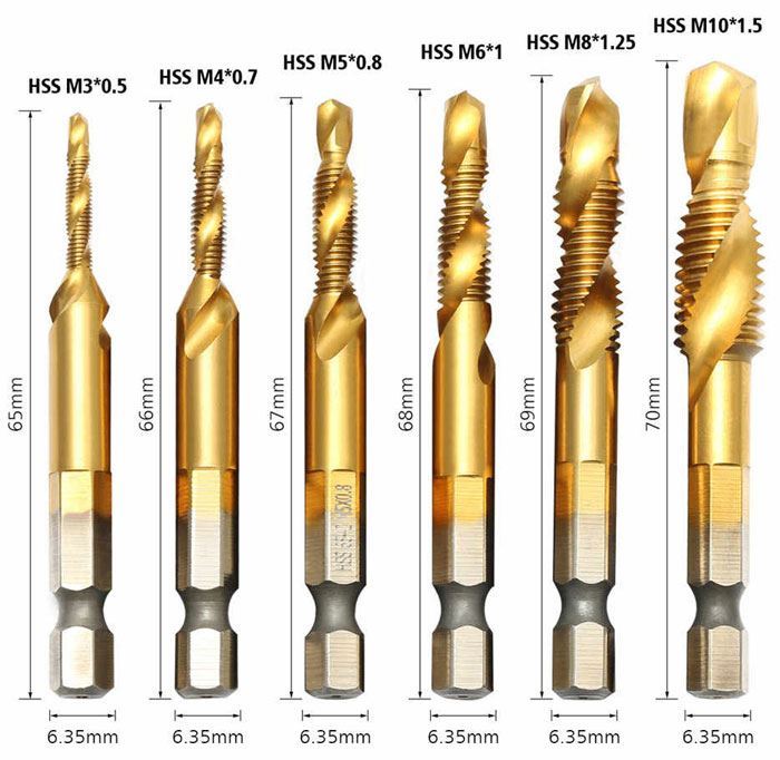 Vrtáky se závitníky M3,M4,M5,M6,M8,M10 s bity 1/4 palce HSS