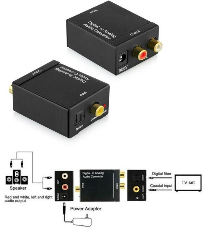 - audio vstup je Digital Audio Toslink a Coaxial a audio výstup je 2× RCA.