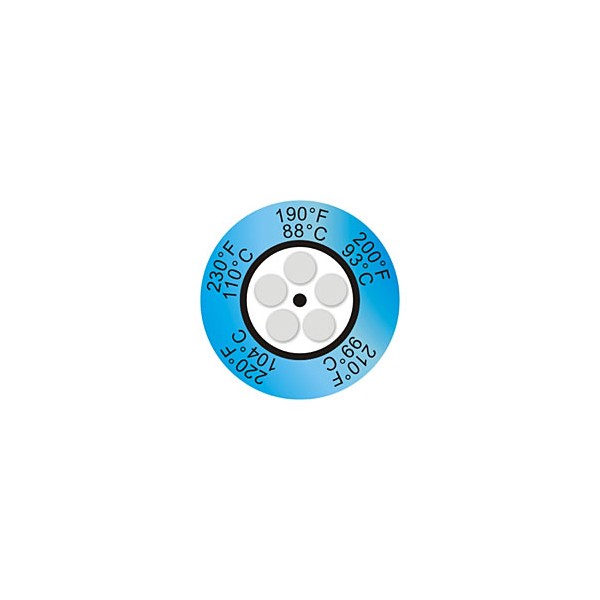 Kruhový samolepící indikátor teploty pro rychlé zjišťování teploty v elektronice, strojírenství, potravinářství, výzkumu, servisu apod.