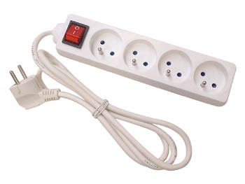 Prodlužovák PES se 4 zásuvkami 230V max.3500W s prosvětleným vypínčem.