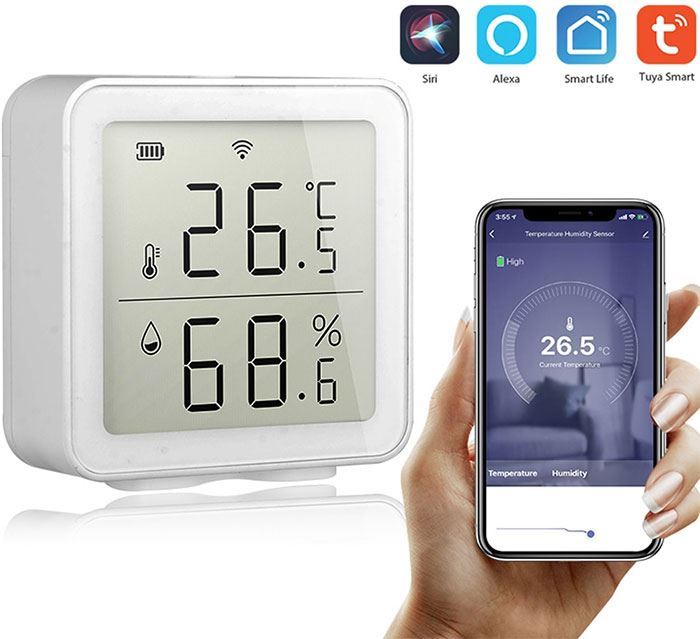 Po připojení k wifi síti lze sledovat teplotu, vlhkost a stav baterií na mobilním zařízení