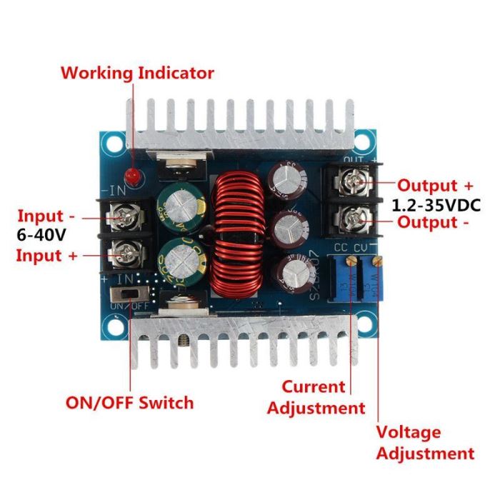 Napájecí modul, step-down měnič 6-40V/1,5-35V 20A.