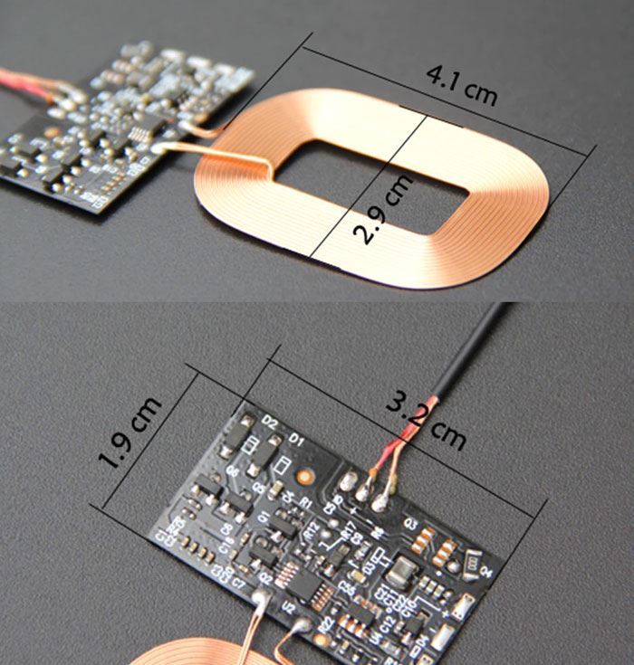 Modul přijímače pro bezdrátové nabíjení s výstupem 5V/1A určený pro nabíjení mobilních telefonů, herních konzolí, digitálních kamer a jiné elektroniky.