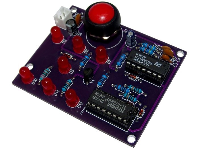 Po stisku tlačítka blikají v rychlém sledu LED a po uvolnění se blikání zpomaluje až do zastavení v náhodné kombinaci 1–6.