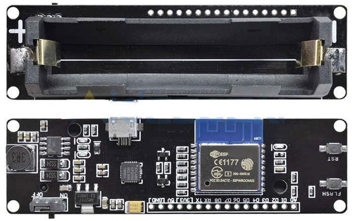 Vývojová deska integruje ESP8266 a 18650 baterii.