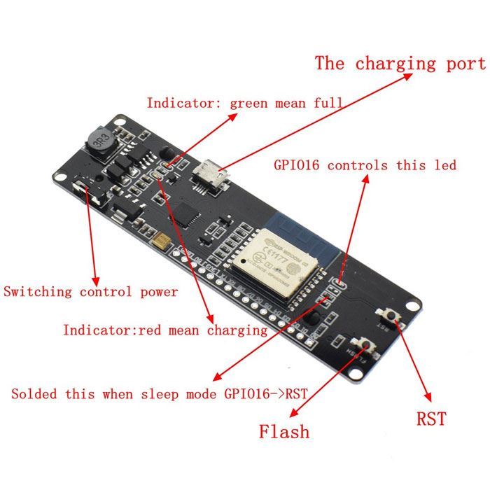 - Koncepce designu vychází z projektu s otevřeným zdrojovým kódem NodeMCU a vývojová deska integruje 18650 systémů nabíjení a vybíjení s ochranou nabíjení a vybíjení