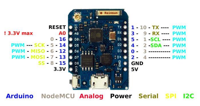 Deska je kompatibilní s Arduino IDE a s NodeMCU. Všechny I/O piny mají přerušení, PWM, I2C a 1-Wire,
