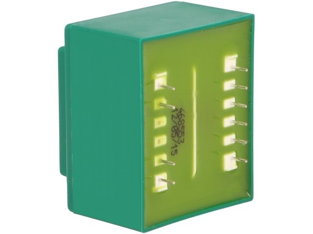 Transformátor 10VA, 230VAC/2x12VAC-416.6mA, zalitý, piny do plošného spoje
