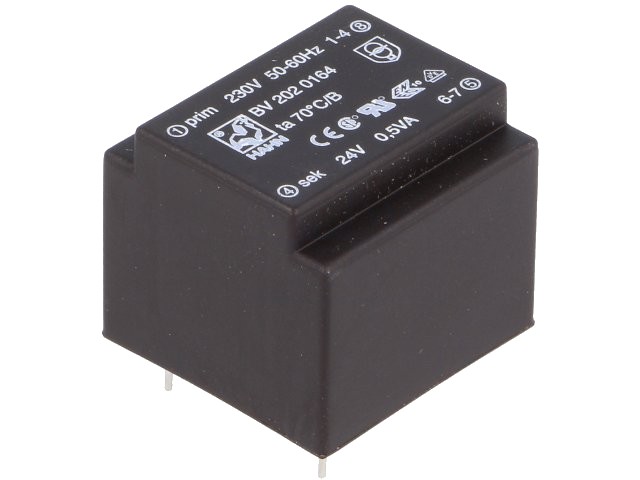 Transformátor 0.5VA, 230VAC/24VAC-21mA, zalitý, piny do plošného spoje