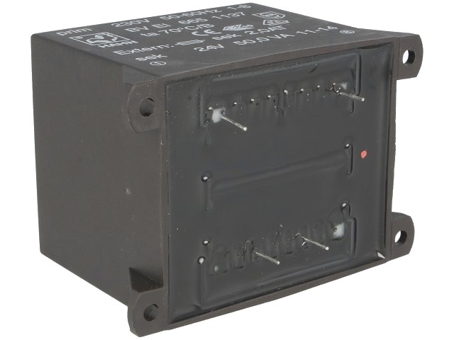 Transformátor 50VA, 230VAC/24VAC-2.08A, zalitý, 4x úchyt, piny do plošného spoje