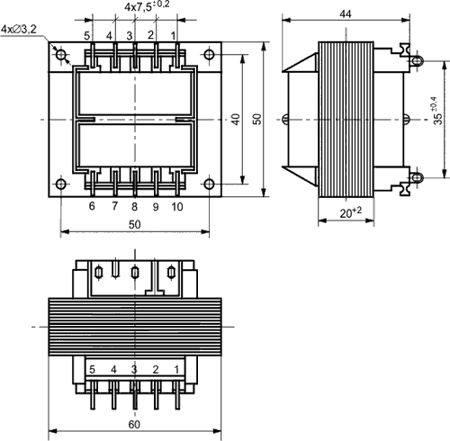 Transformátor 20VA, 230VAC/115VAC-0.17A, holé, pájecí očka