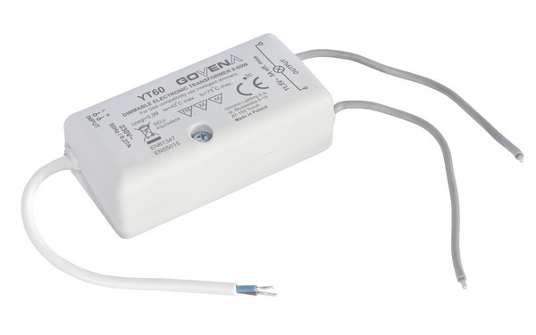 Trafo je umístěno v bílém plastovém krytu.