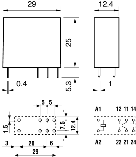 Vnější rozměry: 29 x 12.4 x 25mm