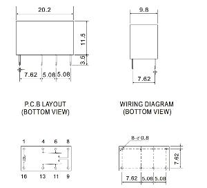 Relé 12VDC, 1.25A, 2x přepínací kontakt