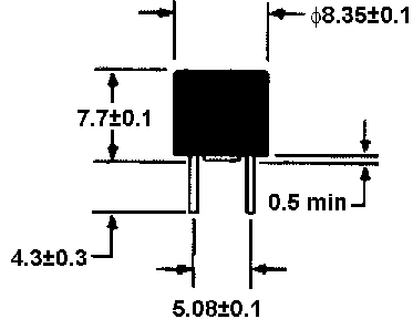 Kulatá pojistka pomalá (T) s radiálními vývody do plošného spoje.