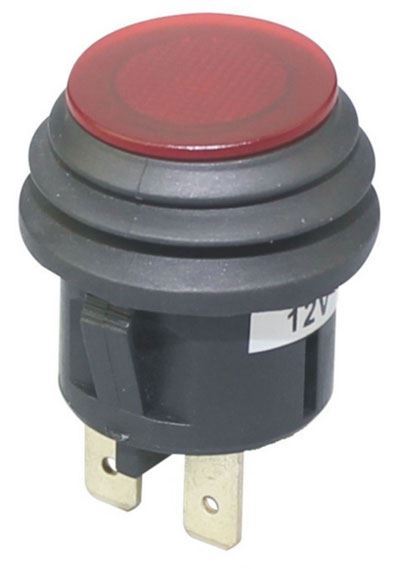 Tlačítko s aretací, rudý hmatník, vodotěsné