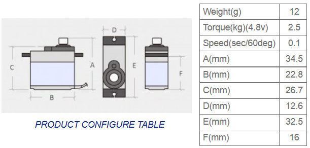 Miniaturní plastové mikroservo 180° 9g, převody z uhlíku.